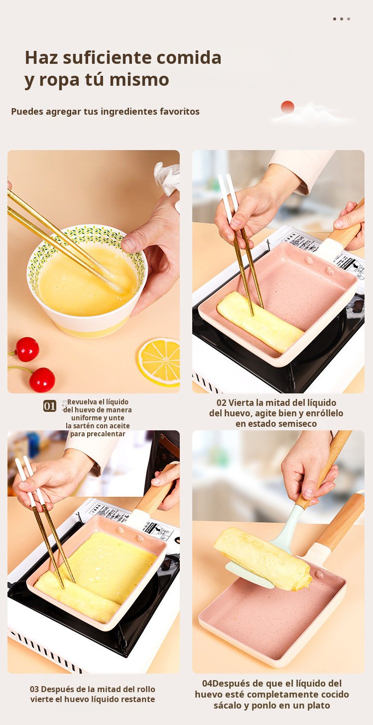 Sartén de piedra médica, sartén cuadrada tamagoyaki, huevo frito, filete, sartén antiadherente, sart